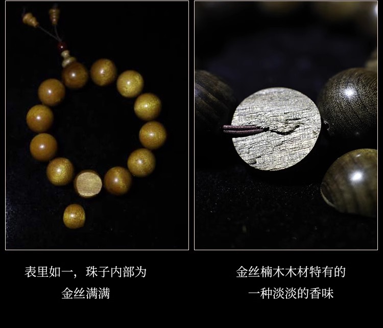 天然金丝楠木手串阴沉金丝楠佛珠手链手串